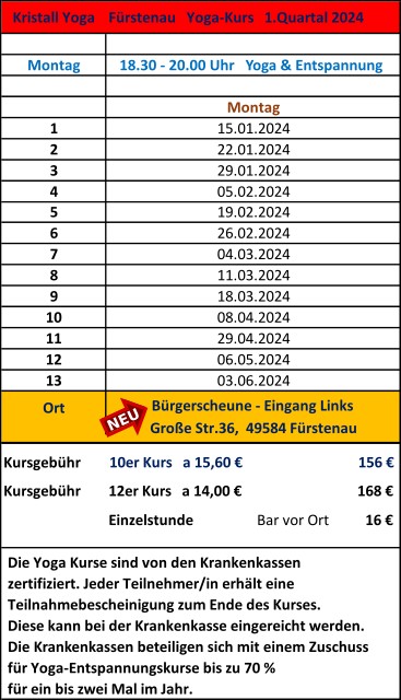 Yoga & Entspannung Montags 18:30 (Fürstenau)